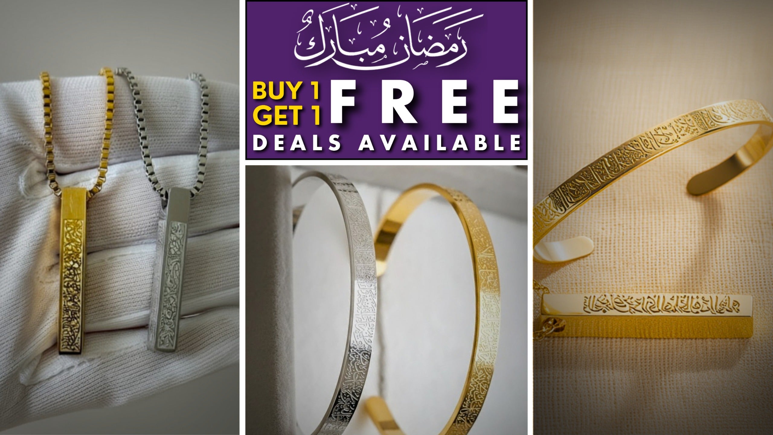 Buy 1 Get 1 Free - Ayatul Kursi Jewelry Set | Bracelet & Bar Necklace